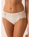 Des lignes élancées pour une allure maîtrisée, la culotte Ginger a de nombreux atouts. Opacité sur le devant, douceur de la maille au dos, élégance de la dentelle aux côtés, cette pièce s’impose pour son confort et son style dans un coloris clair luxueux.