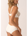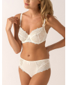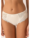 Le travail de découpe sur le devant de la culotte de Louise élance la silhouette et séduit par son grand confort.Le double tulle « en fourreau » sur le panneau central amène maintien et douceur et la guipure posée aux cuisses allège et décore cette pièce.