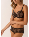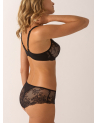 Le shorty Ginger Noir illustre une parfaite mise en scène des broderies et dentelles pour cette pièce légère et invisible sous les vêtements. Le petit motif guipure est l’ultime ponctuation de ce joli bas. En noir, il devient un incontournable du vestiaire féminin, sensuel et discret.