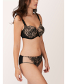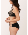 Le soutien-gorge corbeille avec armatures noir du thème Agathe offre un décolleté dégagé très féminin. Ornée de broderies florales à effet tatouage, cette pièce illustre à la perfection la modernité et la sensualité du thème. Un maintien et un galbe parfaits, jusqu'au bonnet G.