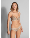 Un soutien-gorge classique emboitant avec armatures au maintien exceptionnel ; la bande tulle en haut de bonnet rassure et apporte une belle légèreté à cette forme emboîtante. Le picot de l’élastique fantaisie souligne avec élégance le décolleté. La séduction est de mise pour cette coupe désormais essentielle. On succombe au luxe et au raffinement de cette nuance beige Or ancien.