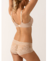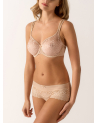 Un bonnet sans couture, associant harmonieusement opacité et transparence d’une dentelle spécialement conçue pour ce soutien-gorge aux bonnets sans coutures. Les bretelles du soutien-gorge invisible classique avec armatures Melody sont confectionnées en mousse recouverte de maille satinée, combinant esthétisme et confort maximal. Le décolleté souligné d’une bordure satinée extra fine apporte toujours plus de confort et de raffinement, tandis que l’ornement en milieu devant, mélange de mousseline et satin, illustre toute la beauté de la collection.