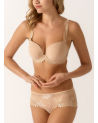 Le soutien-gorge coque avec armatures de Thalia offre un décolleté plongeant et totalement invisible sous les vêtements. Pureté et raffinement sont ici parfaitement symbolisés. La broderie en application décore joliment la bretelle et souligne élégamment la basque.
