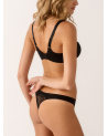 Le string de Thalia allonge la jambe et élance la silhouette. Sa broderie aérienne travaillée sur le devant et son dos tout en dentelle confirment le style séducteur et sexy de cette lingerie.