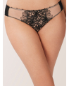 These black, Agathe bikini briefs are a lingerie essential. The mid-cut legs and vibrant floral embroidery add a feminine touch. This piece combines comfort and sophistication.