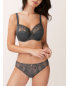 With their scooped leg, the Josephine bikini briefs in Charcoal grey are the collection’s most sensual item. Soft, lightweight tulle enhanced by floral embroidery and lurex details that provide the finishing touch.
