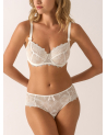 Der Halbschalen-BH von Louise demonstriert wunderbar das Zusammenspiel von der Verarbeitung schöner Materialien, um den Halt und Komfort bis Körbchengröße G zu gewährleisten. Besonders attraktiv sind der ganz feine Zierstich auf den Körbchen und die romantischen Schleifen, die speziell für diese Serie entwickelt wurden. Zart und kostbar betört Louise mit romantischem Reiz. Eine bewegende Serie, die eine großzügige und raffinierte Natur darstellt. Die Ausschnitte sind mit kostbarer Guipurespitze verziert, die das Know-how und die Handwerkskunst luxuriöser Stickereien zur Geltung bringt.