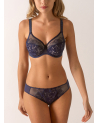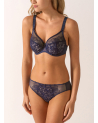 Mit einem Mix aus Retro-Look und Modernität setzt die Kollektion Agathe auf Stoffeffekte und sorgfältig verarbeitete Details. Der klassische Bügel-BH von Agathe, leicht und angenehm zugleich, verführt durch seine hauchzarte Stickerei und den raffinierten Streifen aus Tüll am Dekolleté. Die unterfütterten Cups verleihen diesem Modell eine beruhigende Blickdichte und lassen es dennoch zeitlos schick wirken. Agathe zeigt sich in einem sehr modernen Dunkelblau, dazu Stickereien mit einem luxuriösen Tattoo-Effekt.