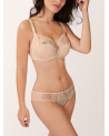 Der hochgeschnittene Bügel-BH in Beige von Joséphine Albâtre bringt Büsten bis Körbchengröße G zur Geltung. Ein Zusammenspiel von Blumenstickereien mit Lurex-Akzenten und blickdichten Untercups verleiht diesem zuverlässigen und femininen Modell einen Hauch von Eleganz. Das Dekolleté ist mit einer zarten Gipüre verziert und ein Schmuckstein rundet das Ensemble ab. Schicker Look garantiert.