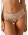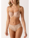 Ein schöner, spitz zulaufender Tülleinsatz betont das Vorderteil dieser Komforthose von Verity. Als Verzierung betont die zarte Spitze die Taille vorn und hinten, und die Satinschleife bringt einen Hauch von Eleganz. Die Serie Verity verbindet Schlichtheit, Weiblichkeit und Komfort. Durch die Auswahl des geometrischen Musters und das ausgeglichene Angebot an Schnittformen und Farbtönen, ist die Serie hochmodern und wird die Fans nahtloser Wäsche begeistern. Mit seiner feinen Spitze wirkt Verity umsomehr extrem raffiniert.