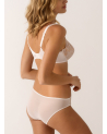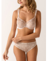 Nahtlose Cups, die auf harmonische Weise Blickdichte und die Transparenz einer speziell für diesen nahtlosen BH entwickelten Spitze verbinden. Die Träger des klassischen, unsichtbaren Bügel-BHs Mélody sind aus Schaumstoff gefertigt und mit satiniertem Gewebe überzogen: Ästhetik und maximaler Komfort in einem. Eine hauchzarte satinierte Bordüre unterstreicht das Dekolleté für noch mehr Komfort und Raffinesse, und die Verzierung vorne in der Mitte, ein Mix aus Musselin und Satin, zeigt die ganze Schönheit dieser Kollektion.