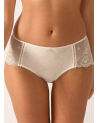 Der Shorty von Lilly Rose ist schlechthin ein verführerisches Wäschestück. Die Stickerei auf elastischem Tüll bietet Komfort in hochmodischer Form. Die Mischung der Blumenstickerei mit dem Leiterhohlsaum-Optik bedruckten Stoff zeichnet die Romantik im Boudoir-Stil der Serie Lilly Rose aus. Die formvollendeten Perlmuttknöpfe auf einem Satinband und die präzise Verarbeitung der Lochmuster geben dieser ikonischen Modellreihe den letzten Schliff. Ein Symbol der Zartheit, das mittlerweile unentbehrlich ist.