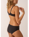 Le travail de découpe sur le devant de la culotte de Louise élance la silhouette et séduit par son grand confort.Le double tulle « en fourreau » sur le panneau central amène maintien et douceur et la guipure posée aux cuisses allège et décore cette pièce.