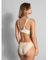 Une forme de soutien-gorge emboîtante avec armatures qui se veut rassurante et travaillée en semi-opaque à porter au quotidien. Les bonnets brodés sont soulignés de dentelle au centre du produit. On aime particulièrement le raffinement des bretelles recouvertes d’une petite dentelle « façon macramé ». Dans son coloris Cream, la broderie se révèle.