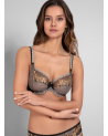 La broderie dense et régulière assure un maintien parfait à cette forme essentielle. Le soutien-gorge classique avec armatures offre une belle couvrance et rassure grâce à ses bretelles centrées au creux des épaules. La basque décorée, les bretelles ornées de broderie, le bijou doré, … toutes les finitions sont choisies avec soin pour faire de cette forme un nouveau must-have. La version en coloris Noir apporte un beau contraste avec un beige, rehaussé de doré.