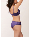 Le slip de Cassiopée joue la carte de la broderie avec douceur et confort. La dentelle graphique se détache pour apporter une touche de décor élégante et séductrice. Le puissant coloris Dark purple nous enivre cette saison.