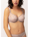 Un bonnet sans couture, associant harmonieusement opacité et transparence d’une dentelle spécialement conçue pour ce soutien-gorge aux bonnets sans coutures. Les bretelles du soutien-gorge invisible classique avec armatures Melody sont confectionnées en mousse recouverte de maille satinée, combinant esthétisme et confort maximal. Le décolleté souligné d’une bordure satinée extra fine apporte toujours plus de confort et de raffinement, tandis que l’ornement en milieu devant, mélange de mousseline et satin, illustre toute la beauté de la collection.