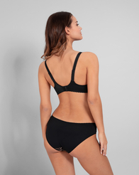 With the embroidered inserts and printed mesh, these briefs enhance the figure, and the microfibre fabric back is extremely soft. A small plumetis bow adds a pretty retro touch. Available in an ultra-seductive Black.
