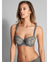 This demi-cup shape bra with underwiring combining support and a lightweight feel has a gorgeous low neckline embroidered all the way along. You’ll love the fit and the Empreinte lift provided by the 3-part cups. A shape enhanced by floral lace on the underband for a real ‘lingerie of days gone by’ effect. A chic and timeless classic in the Granite colourway.