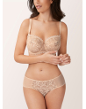 This Josephine balcony, underwired bra in Alabaster beige is a sensual, delicate piece and the star of our new collection. The floral embroidery with lurex thread lends an undeniably luxurious touch, complementing all skin tones. The adjustable straps provide optimal support for cup sizes C to G
