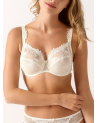De omhullende Thalia beugelbeha heeft een verhullend, geruststellend model. De constructie in drie delen garandeert ondersteuning en comfort. Vrouwelijkheid en verfijndheid worden benadrukt door rijk boorduurwerk en met tule gevoerde kant op de onderkant van de cups.
