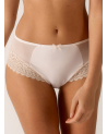 The Mélody panty, with its combination of function and invisibility, is a new ‘must have’ item. The reassuring, high-waisted microfibre front covers the curves. The back is entirely made of lace for complete invisibility under clothing. An attractive, soft and flattering item perfect for everyday wear.
