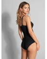 This flattering shape with V neckline is highly feminine and is a must-have item in the Swimwear collection. With perfect support and adjustable straps, this one-piece, straight back swimsuit provides an elegant shape up to a G cup. Embrace the creative freedom of this unique model featuring lavish fringe detailing that add a sexy touch to this jet-black look.